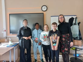 C'est  Océane (au centre) qui a remporté la majorité des voix avec la lecture d'un extrait d'Arsène Lupin de Maurice Leblanc.  C'est donc elle qui représentera sa classe à la sélection académique.