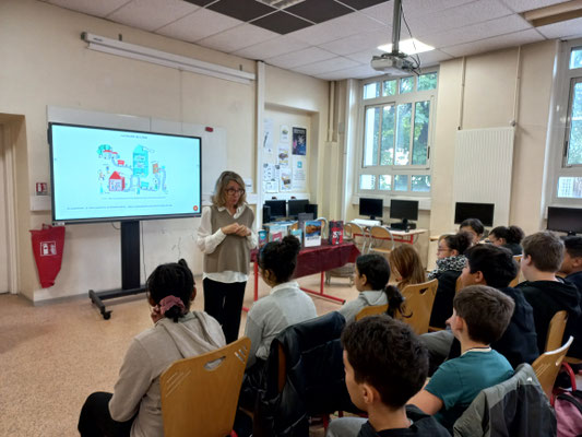 Mme Castera, directrice des éditions Gilletta, installées depuis le 19è siècle à Nice, est venue rencontrer les élèves de 6è1 et 6è5. L'objectif : faire découvrir aux élèves les différentes facettes du métier d'éditrice, métier assez mal connu et pourtant essentiel dans la chaîne du livre.