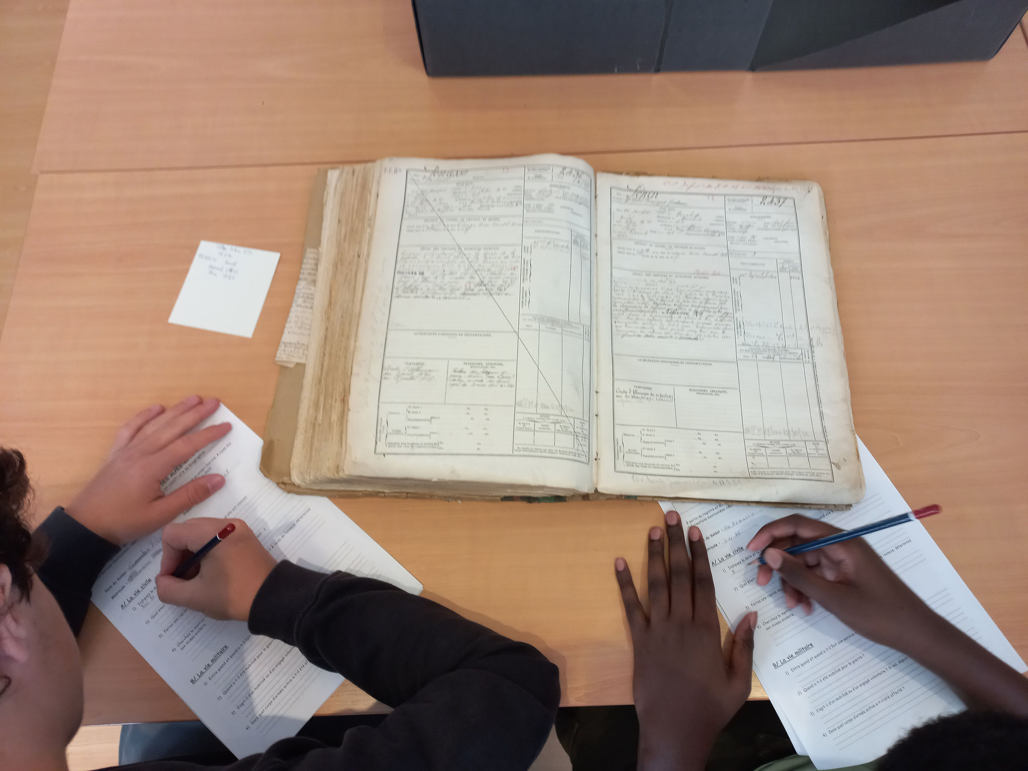 • un travail de groupe à partir des registres matricules, avec un questionnaire à remplir par les élèves.