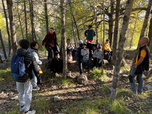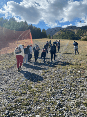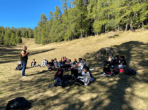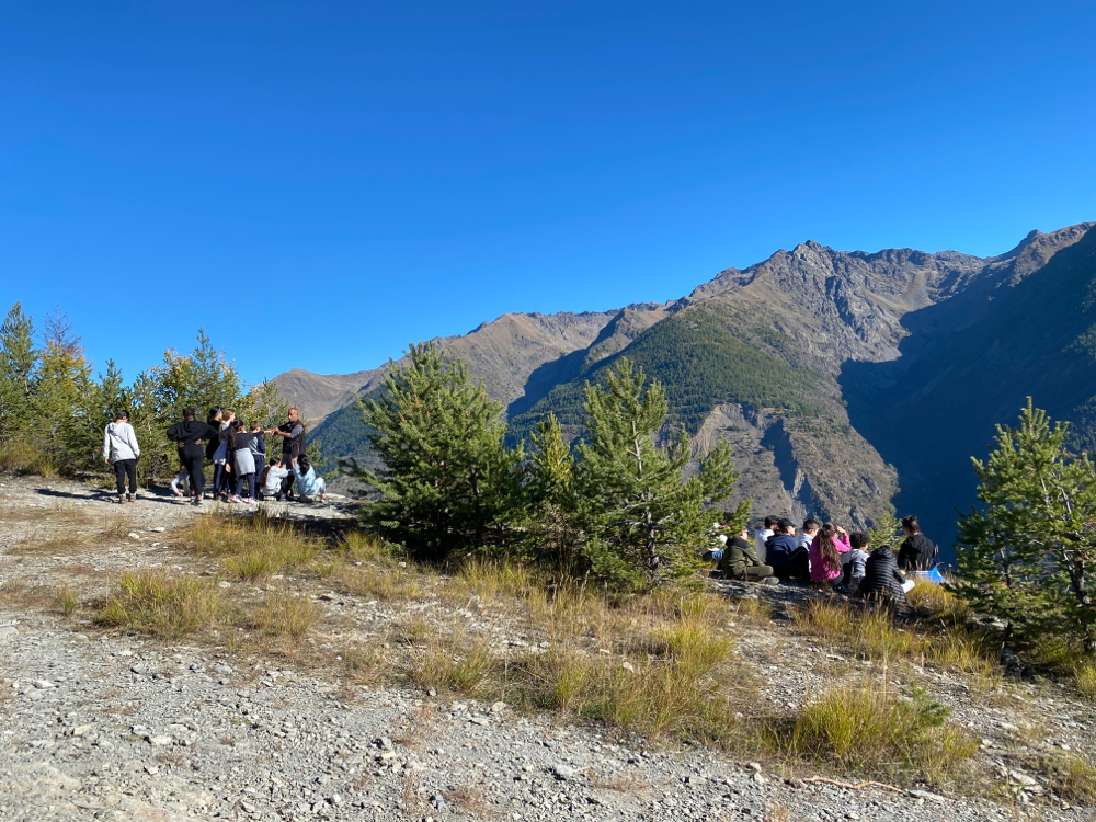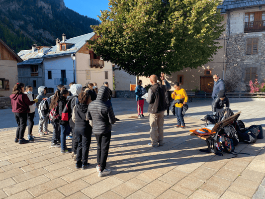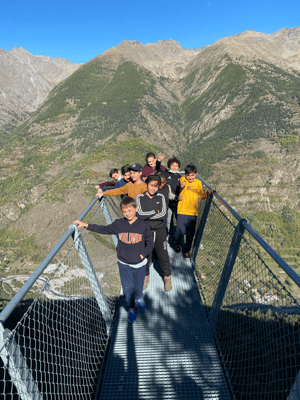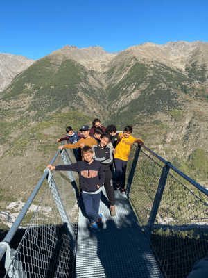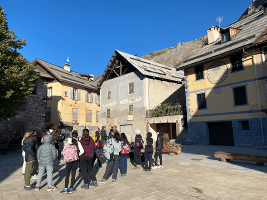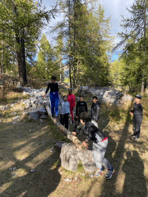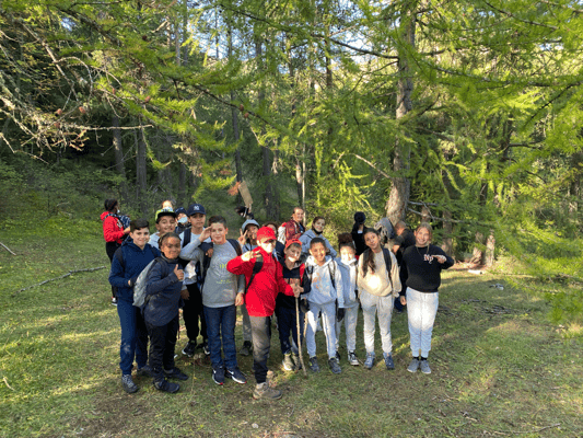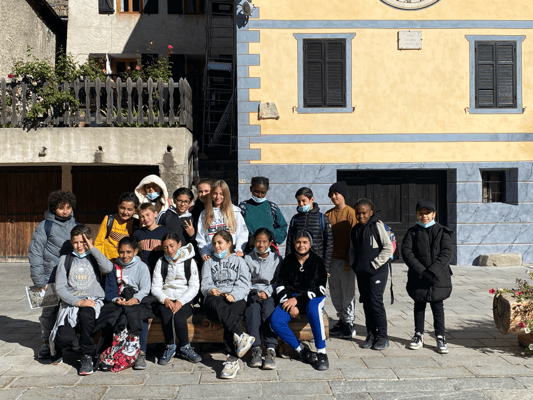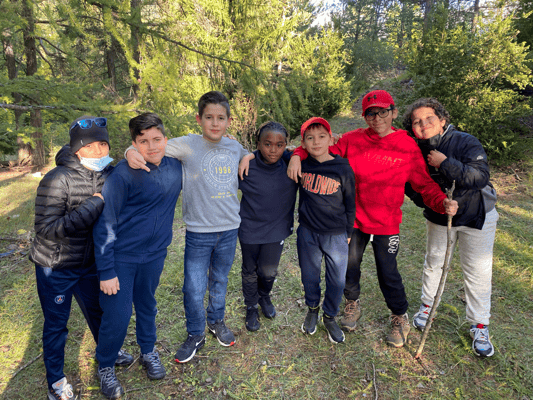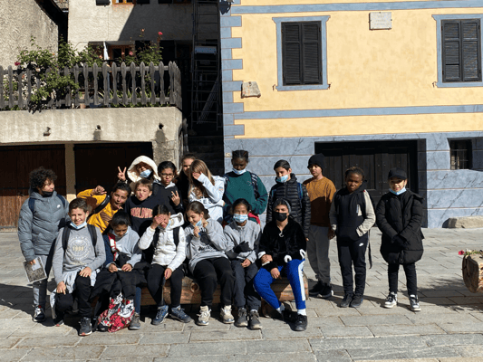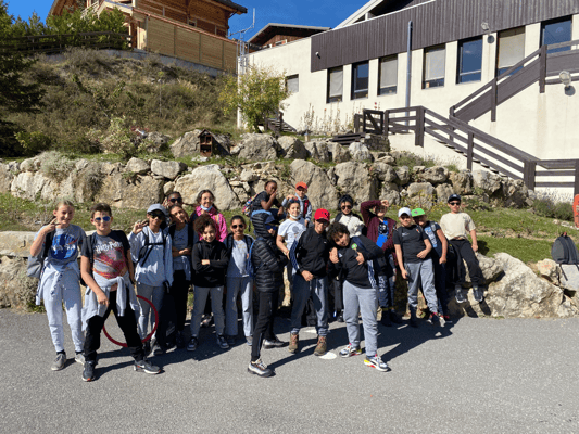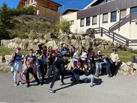 La 6eme2 qui posent devant le grand chalet où nous logeons