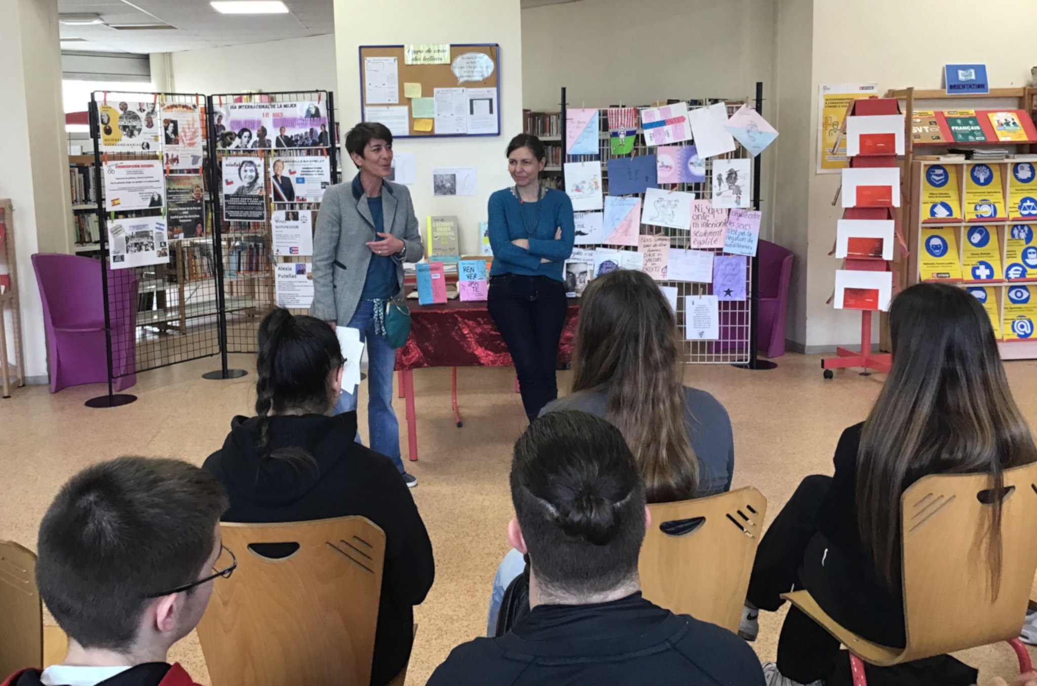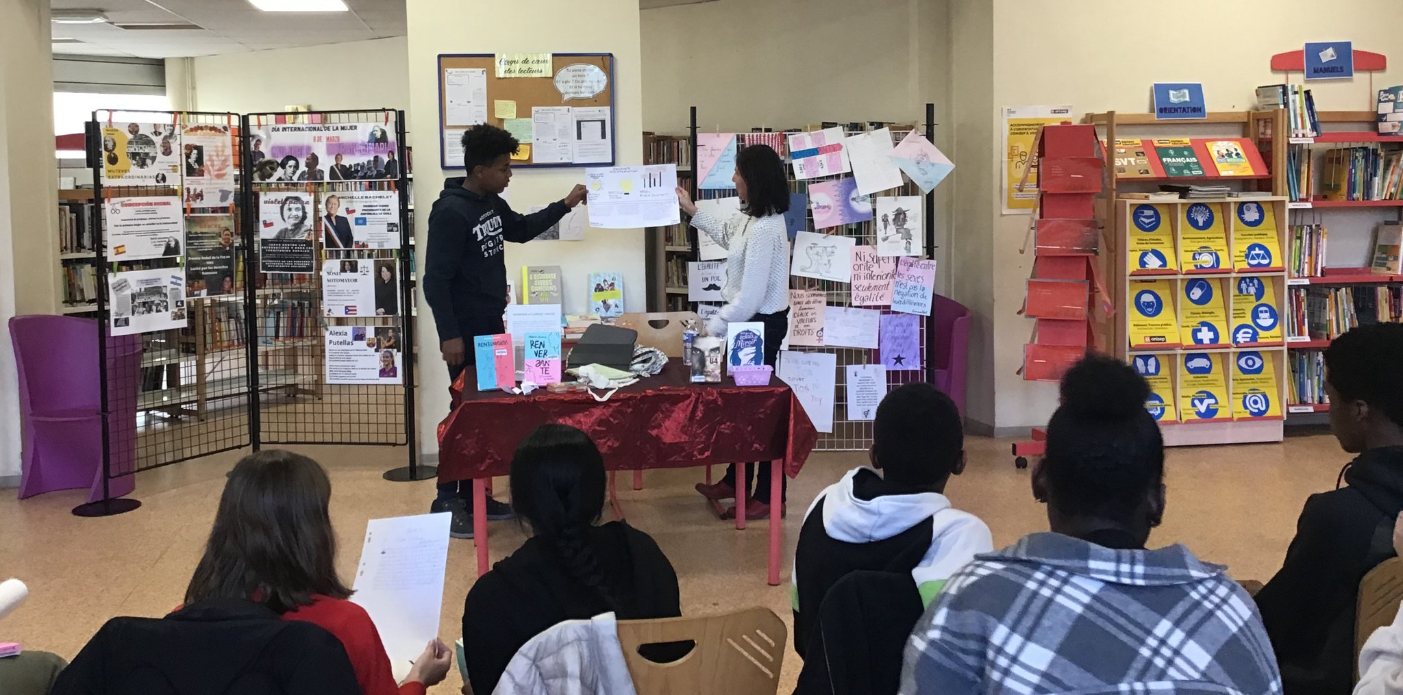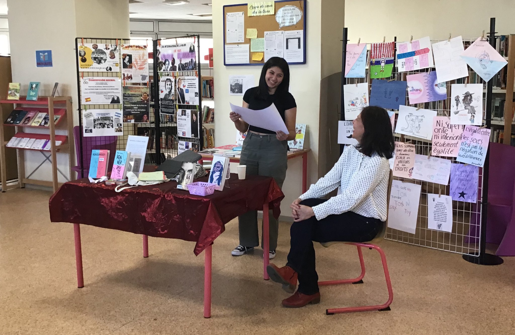 Une exposition réalisée par les élèves hispanophones (LCE) à l'occasion de la Journée internationale des femmes, installée au CDI, complétait les réflexions soulevées par Renversante, pamphlet original et percutant.