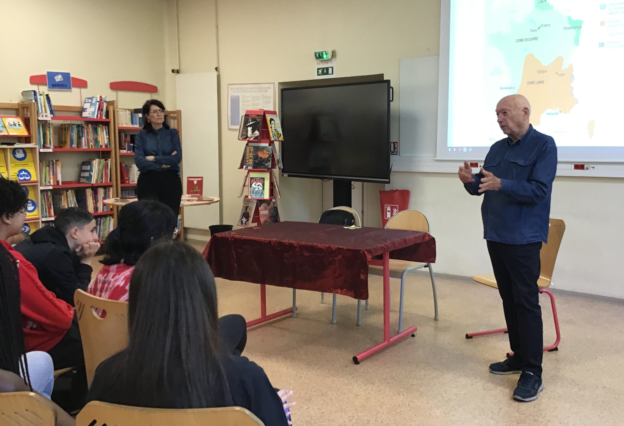 Les élèves des classes de 3è ont eu la chance de rencontrer deux témoins de la seconde guerre mondiale, Daniel Wancier et Roger Wolman, venus témoigner au collège de la répression mise en place contre les juifs.