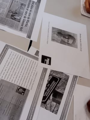 Après une présentation de la genèse, de l'histoire et des missions du Mémorial, à la fois à Paris et à Drancy, les élèves ont travaillé en atelier, à partir de documents d'archives, sur les parcours de vie d'une famille française pendant la Seconde Guerre mondiale : les Jacob, famille de Simone Veil. En s'appuyant sur des extraits de registres d'état civil, des fiches d'internement, des dossiers professionnels, des listes de convois de déportation, des photographies de famille, des témoignages écrits (carnets, etc.), les élèves ont pu reconstituer les trajectoires des différents membres de la famille pendant la guerre : celles des parents, André et Yvonne, et de Jean, le frère de Simone, morts en déportation ; et celles des trois soeurs, Madeleine, Denise - entrée en Résistance - et Simone, toutes trois rescapées des camps. Les élèves ont ainsi pu appréhender de façon sensible les impacts directs de l'Histoire sur les destins individuels d'une famille française juive sous l'Occupation.