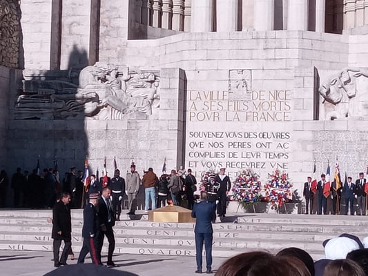 Une délégation d'élèves de 3è, accompagnés de Mme la Principale et de Mme Leconte, a tenu à être présente lors de la cérémonie du 11 novembre 2023 au Monument aux morts de Rauba-Capeu.