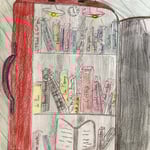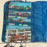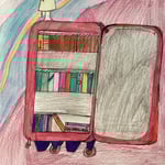 "La Biblio-valise", en format dessin. Cette valise permet d'emporter avec soi ses livres préférés, de les ranger selon ses émotions, en créant son propre espace de lecture.