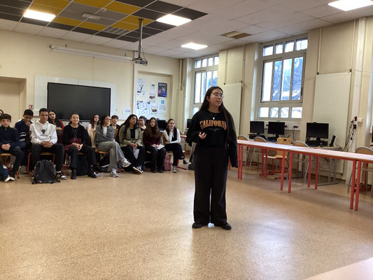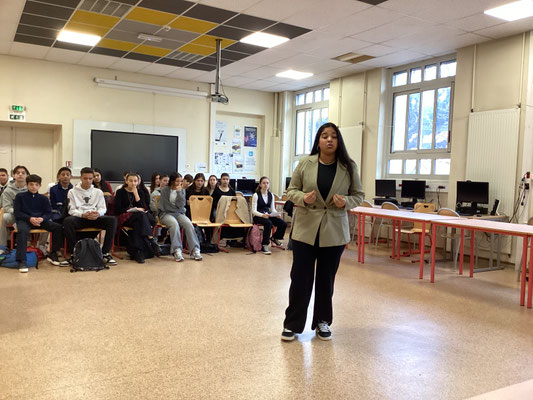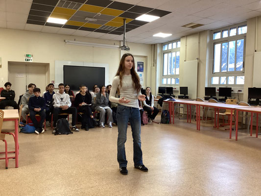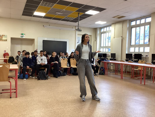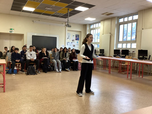 Mardi 14 janvier 2025 s'est déroulée la première sélection du concours : les quarts de finale. L'ensemble des élèves de 3è a déclamé son texte devant un jury composé d'enseignantes de