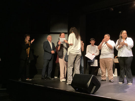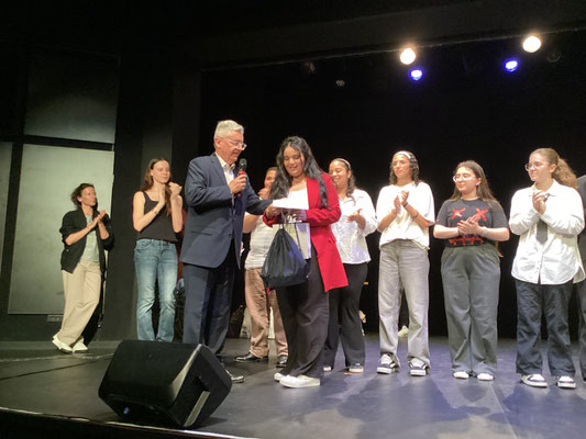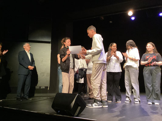 Cette année, les 11 finalistes ont eu la chance de pouvoir se produire sur les planches du théâtre Francis Gag, devant l'ensemble des élèves de 3è du collège, des parents, Mme La Principale, des professeurs et.... le jury !