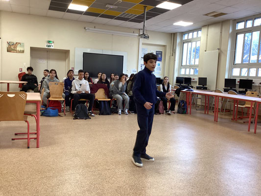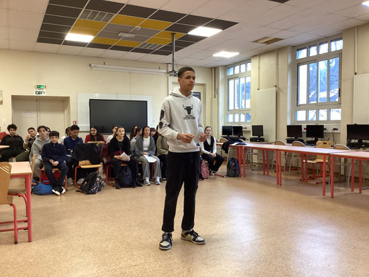 Puis arrive la phase de l'oralisation des discours. Aidés des précieux conseils du comédien Jérôme Kocaoglu, les élèves apprennent à placer leur voix, utiliser leur corps, interpeler le public, articuler, gérer leur stress. De gros défis en perspective ! Avec un objectif : se dépasser !