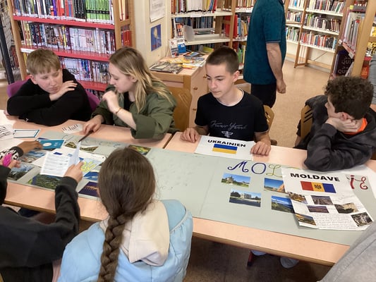 Ce sont les élèves de la section UPE2A qui ont préparé des ateliers au CDI sur leur pays d'origine : l'Ukraine, la Tunisie, la Colombie, la République dominicaine, la Moldavie, le Cap vert,