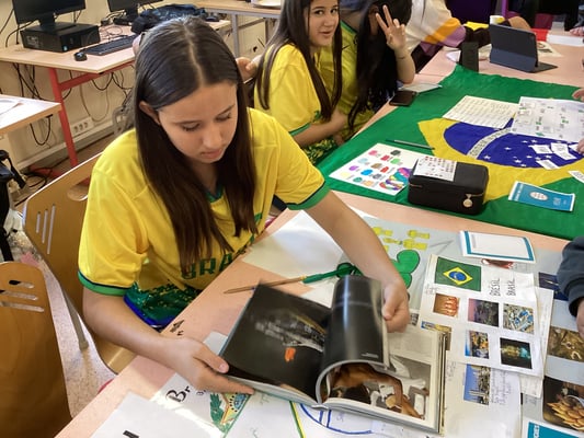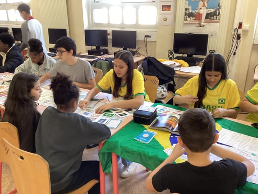 le Portugal, le Brésil, etc. Les écoliers ont pu ainsi échanger avec les collégiens sur des cultures étrangères grâce à des jeux, des images, des mots en langue étrangère, etc. Un vrai tour du
